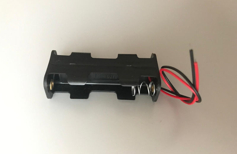 Porta batterie per 2 pile AA (stilo). Lunghezza fili 135 mm. Dimensioni 56 x 26 x 16.